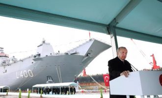 Τουρκία: Ναύαρχος και υπουργός Άμυνας κρατούν μοντέλο πολεμικού πλοίου κατά την ομιλία Ερντογάν, προκαλώντας χλευασμό και κριτική