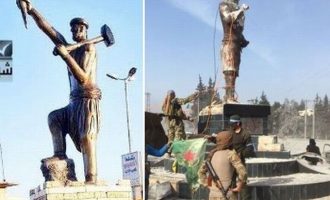 Τούρκοι και τζιχαντιστές γκρέμισαν τον ανδριάντα του μυθικού ήρωα Χασενκάρ Κάουα στην Εφρίν