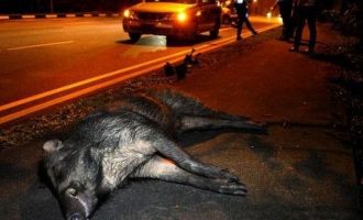 Αγριογούρουνο 200 κιλών είχε τροχαίο με αυτοκίνητο στη Φθιώτιδα