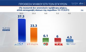 Η δημοσκόπηση της Alco για το OPEN δίνει διαφορά 13,6% της Νέας Δημοκρατίας από τον ΣΥΡΙΖΑ. Συγκεκριμένα η Νέα Δημοκρατία…