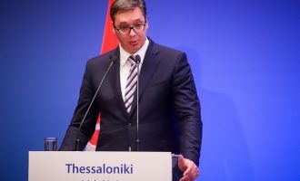 Ο πρόεδρος της Σερβίας, Αλεξάνταρ Βούτσιτς στη συνέντευξη Τύπου που έδωσε στη Θεσσαλονίκη, μετά το τέλος της τετραμερούς Ελλάδας –…