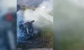 Ο δρόμος είναι στενός, όπως περισσότεροι δρόμοι στην αλβανική ύπαιθρο. Ο νεαρός οδηγός με την παρέα του δεν υπολογίσαν σωστά…