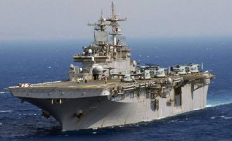 Τέσσερις χιλιάδες Αμερικανοί ναύτες και πεζοναύτες που επιβαίνουν στο πολλαπλών χρήσεων αμφίβιο σκάφος USS WASP (LHD 1) και στο USS…