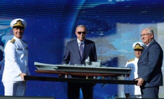 Τουρκία: Ναύαρχος και υπουργός Άμυνας κρατούν μοντέλο πολεμικού πλοίου κατά την ομιλία Ερντογάν, προκαλώντας χλευασμό και κριτική