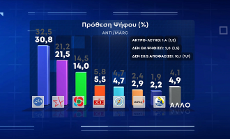 Δημοσκόπηση ΑΝΤ1: Κάτω από 30% η ΝΔ – Μονοψήφιο το ΠΑΣΟΚ