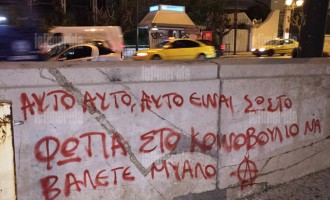 Δείτε τι έγραψαν αντιεξουσιαστές στον εξωτερικό τοίχο της Βουλής