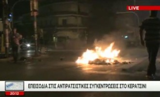 Επεισόδια στις αντιρατσιστικές συγκεντρώσεις στο Κερατσίνι για τη δολοφονία Φύσσα
