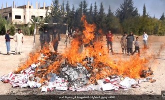 Το Ισλαμικό Κράτος έκαψε ένα… “βουνό” από τσιγάρα στην Παλμύρα (φωτο)