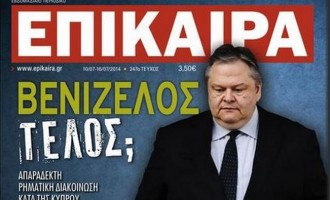 “Βενιζέλος τέλος;” είναι ο τίτλος του περιοδικού Επίκαιρα που αναμένεται να προκαλέσει πολλές αναταράξεις αφού το περιοδικό ανήκει στην οικογένεια…