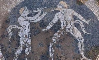 Ερέτρια: Αποκάλυψη βοτσαλωτού ψηφιδωτού δαπέδου με παράσταση Σατύρων