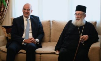 Ο Νίκος Δένδιας συναντήθηκε με τον Αρχιεπίσκοπο Σινά: «Αμέριστη στήριξη στην ιστορική Μονή Σινά»