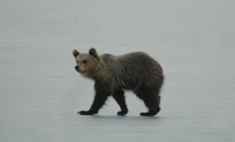 Ένα αρκουδάκι έκανε επί ώρες βόλτα πάνω στην παγωμένη λίμνη της Καστοριάς