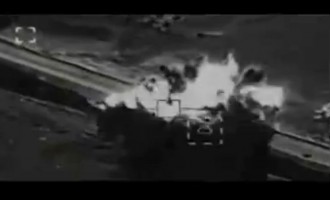 Στο βίντεο που δόθηκε στην δημοσιότητα σήμερα καταγράφει τον βομβαρδισμό οχήματος των τζιχαντιστών που πηγαίνει προς ενίσχυση του Ισλαμικού Κράτους…