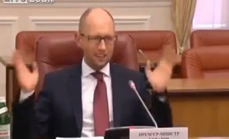 Ο θεατρίνος Πρωθυπουργός της Ουκρανίας, Αρσένι Γιατσένιουκ, προβάρει ξανά και ξανά την ομιλία που θα κάνει προς τον λαό της…