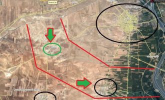 Στον χάρτη βλέπετε πώς κινούνται οι τουρκικές δυνάμεις και οι τουρκόφιλοι τζιχαντιστές του Ελεύθερου Συριακού Στρατού (FSA) ώστε να περικυκλώσουν…