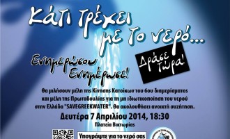 SAVEGREEKWATER: Ανοιχτή εκδήλωση τη Δευτέρα στην πλατεία Βικτωρίας