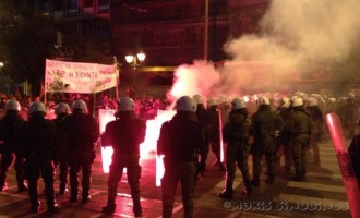 Ξύλο και δακρυγόνα στην απαγορευμένη διαδήλωση στο κέντρο της Αθήνας