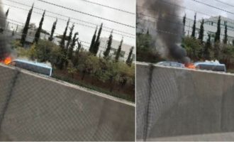 Τουριστικό λεωφορείο «λαμπάδιασε» στην Αττική Οδό (φωτο)