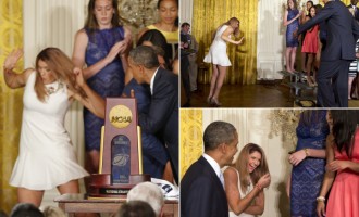 Ουπς! Γλίστρησε και έπεσε στην… αγκαλιά του Ομπάμα