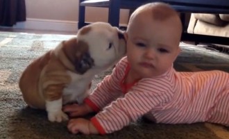 Το μικρό μπουλντόγκ δεν σταματά να φιλάει όλη την ώρα το βρέφος της οικογένειας. Το βίντεο που ανέβασαν στο You…