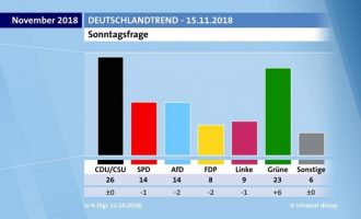 Μόλις τρεις μονάδες χωρίζουν τους Πράσινους από την Χριστιανική Ένωση (CDU/CSU) στην εβδομαδιαία δημοσκόπηση Deutschlandtrend του πρώτου καναλιού της γερμανικής…