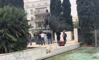Επεισόδια στο αντιπολεμικό συλλαλητήριο – Πήγαν να κατεβάσουν το άγαλμα του Τρούμαν