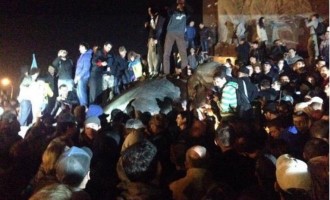 Νεοναζί γκρέμισαν το άγαλμα του Λένιν στο Χάρκοβο (φωτο + βίντεο)