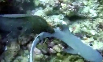 Χέλι καταπίνει ολόκληρο καρχαρία (βίντεο)