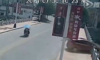 Η οδηγός στρίβει προς την γέφυρα στο Ανχούι στην Κίνα και παθαίνει πανικό. Αντί να πατήσει το φρένο πάτησε το…