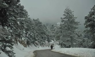 Διακόπηκε η κυκλοφορία στον Υμηττό και στην Πεντέλη λόγω χιονόπτωσης