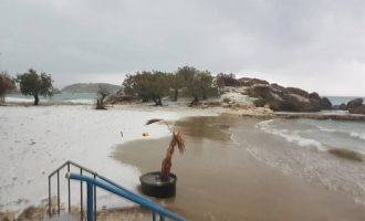 Απίστευτο: Χιόνισε σε παραλία στα Χανιά (φωτο)