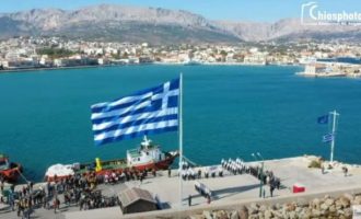Γιγαντιαία ελληνική σημαία κυματίζει στη Χίο για την επέτειο της 28ης Οκτωβρίου