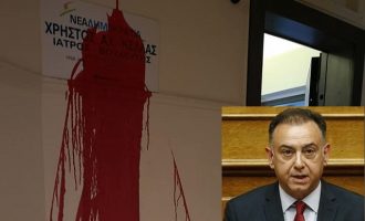 Λάρισα: Επίθεση με μπογιές στο γραφείο του βουλευτή της ΝΔ Χρήστου Κέλλα