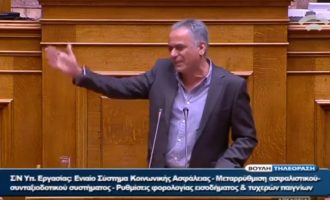 Χάος στην ολομέλεια της Βουλής με τη φρουρά να επεμβαίνει για να απομακρύνει χρυσαυγίτη βουλευτή και διακοπή της συνεδρίασης. Εντολή…