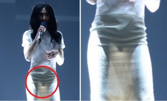 Πραγματικός χαμός έχει γίνει στο διαδίκτυο με τη φωτογραφία που δείχνει την Conchita επί της σκηνής και ανάμεσα στα σκέλια…