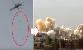 Ελικόπτερο της Συρίας βομβαρδίζει προάστιο της Δαμασκού (βίντεο)