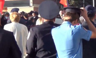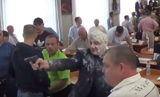 Η κίνηση ενός διαδηλωτή να τον… λούσει με βουτυρόγαλα δεν άρεσε σε έναν Ουκρανό πολιτικό που αντέδρασε και τράβηξε πιστόλι…