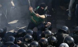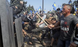 Μερικές χιλιάδες φασίστες συγκρούστηκαν με την αστυνομία σήμερα έξω από τη Βουλή στην Ουκρανία την οποία έπληξαν με πέτρες, καπνογόνα,…