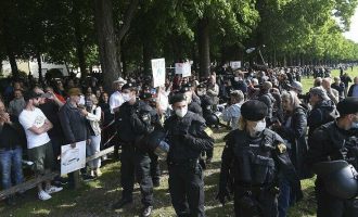 Αστυνομικοί, φορώντας μάσκες, συγκρούστηκαν σήμερα Σάββατο με διαδηλωτές που συγκεντρώθηκαν στο Βερολίνο για να διαμαρτυρηθούν για την καταπάτηση των συνταγματικών…