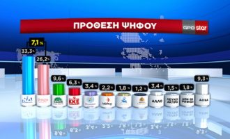 Στις 7,1 μονάδες βρίσκεται η διαφορά ΝΔ-ΣΥΡΙΖΑ στην δημοσκόπηση της GPO που παρουσιάστηκε στο κεντρικό δελτίο του Star. Συγκεκριμένα στην…