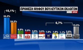 Δημοσκόπηση MRB: 11,9 μονάδες μπροστά η Ν.Δ