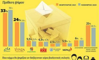 Δημοσκόπηση: 15 μονάδες μπροστά η Ν.Δ. – Να ανοίξουν μαζί σχολεία και λιανεμπόριο