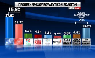 Δημοσκόπηση: Στις 15,9 μονάδες η διαφορά ΝΔ-ΣΥΡΙΖΑ