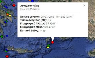 Σεισμός 3,9 Ρίχτερ ανοιχτά της Ρόδου