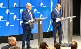 Στην κοινή συνέντευξη Τύπου που παραχώρησε ο Ντόναλντ Τουσκ με τον Ζαν Κλοντ Γιούνκερ, μετά το τέλος της Συνόδου Κορυφής,…