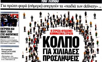 Διαψεύδει κατηγορηματικά το υπουργείο Εσωτερικών δημοσίευμα της εφημερίδας «Ελευθερία του Τύπου», για χιλιάδες προσλήψεις στο Δημόσιο από τον ΣΥΡΙΖΑ, για…