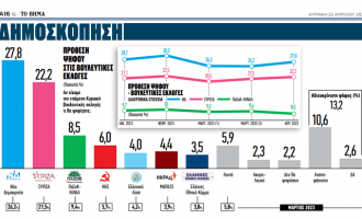 Δημοσκόπηση «Βήμα της Κυριακής»: Στο 5,6% η διαφορά ΝΔ-ΣΥΡΙΖΑ – Αδύνατη η «αυτοδυναμία»