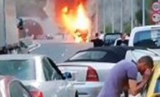 Τουριστικό λεωφορείο τυλίχθηκε στις φλόγες στην Εγνατία Οδό (βίντεο)
