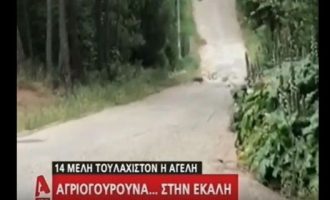 Δείτε αγέλη από 14 αγριογούρουνα να κάνουν… «τσάρκα» στην Εκάλη (βίντεο)