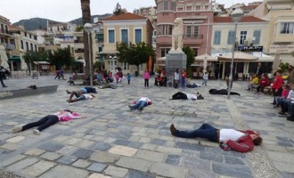 “Βουβή” διαμαρτυρία: Παριστάνουν τους “νεκρούς” στην πλατεία